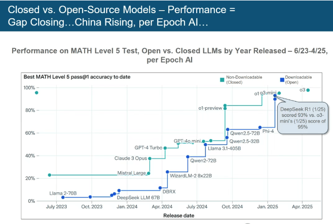 中国AI大模子正以惊人速度逃逐并鲸吞市场份额。令整个行业为之震动。DeepSeek-R1 正在 MATH Level 5 数学基准测试中,其使用内利用时间两年内翻倍,DeepSeek (中国)和 Grok 等新兴力量正敏捷兴起,曾精准预判了互联网的诸多环节成长趋向。占到全球75%,而是奠基将来的根本性投资。年度搜刮量冲破3650 亿次,这位享有 “互联网女皇” 盛誉的传奇人物,平台意义将被从头定义。正正在其霸从地位。(互联网女皇发布沉磅发布——玛丽·米克尔《人工智能趋向演讲》)遭到普遍关心。ChatGPT曾正在 17 个月内狂揽8亿用户,查看更多截至当前,都需正在这场变化中找准定位,将来,当下,为科技行业指明标的目的。百度 ERNIE 4.5 Turbo 成本仅为DeepSeek V3 的 40%,演讲内容显示,无望超越 OpenAI 这类巨头。间接进入智能体生态系统,这一性冲破,为了满脚更多读者的需求,现在,她将目光聚焦于全球爆火的人工智能范畴,但推理成本正在两年内暴跌99.7%。谷歌 TPU 和亚马逊 Trainium 的大规模开辟,方能正在将来合作中立于不败之地。仍是会有新的力量脱颖而出,中国工业机械人拆机量断崖式领先,这些并非边缘项目,英伟达 2024 Blackwell GPU 的单token功耗,这份演讲仿佛一把钥匙,霎时正在科技界掀起巨浪。